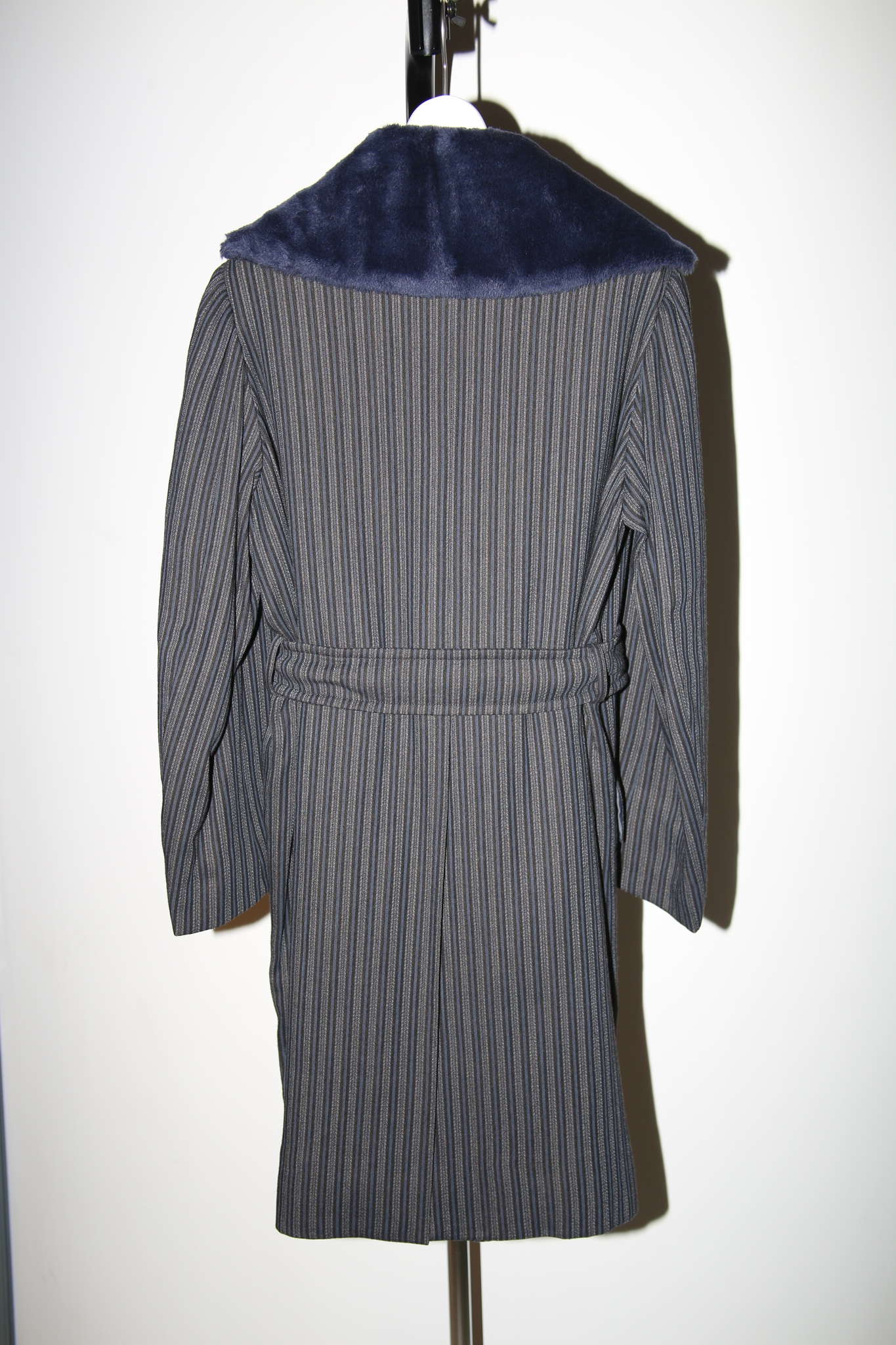 1990 ROMEO GIGLI / DOUBLE BREASTED WOOL STRIPE COAT WITH BOA COLLAR
