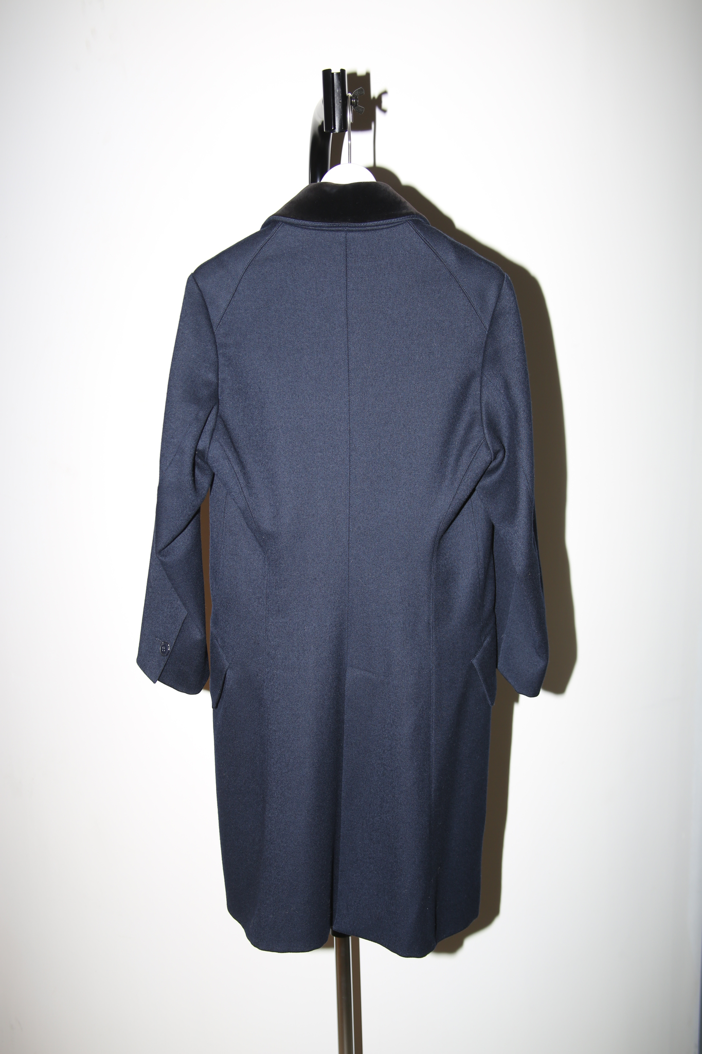 1970 HERMES / WOOL KARSEY BALMACAAN LONG COAT IN NAVY