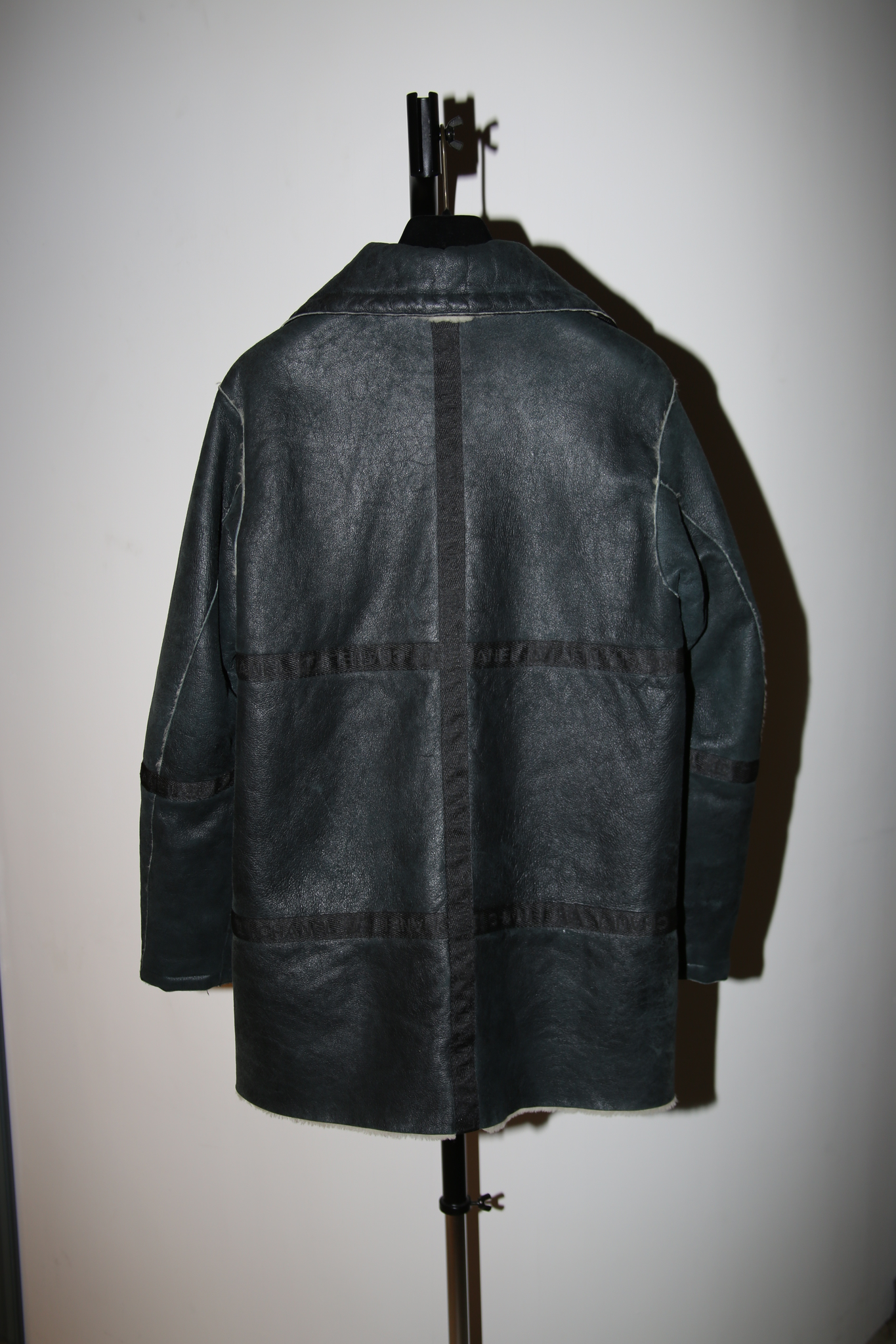2002 CHANEL / REVERSIBLE SHEEP SKIN SHIRRING JACKET IN BLACK AND WHITE