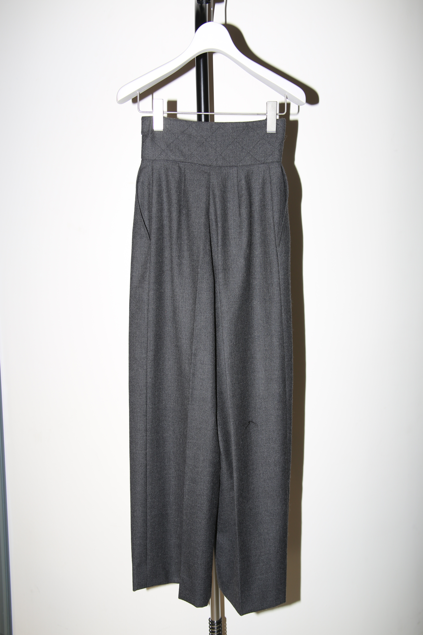 1990 CHANEL / HIGH-WAIST BELTED WOOL BAGGY TROUSER IN GREY